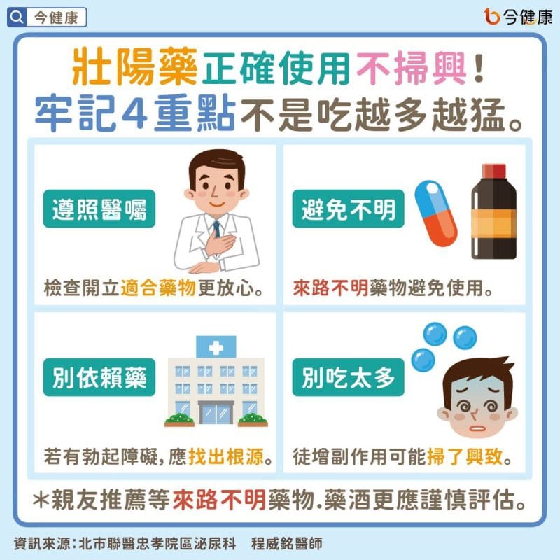 然而,遊佩雯醫師提醒,若有雄風不振的問題,最好先諮詢醫師診斷,以找出潛在原因,再搭配以藥物輔助,自然能重振雄風!切勿因自尊顏面問題拒絕就診,或擅自使用偏方以及來路不明的藥丸,以免延誤診治反而得不償失!