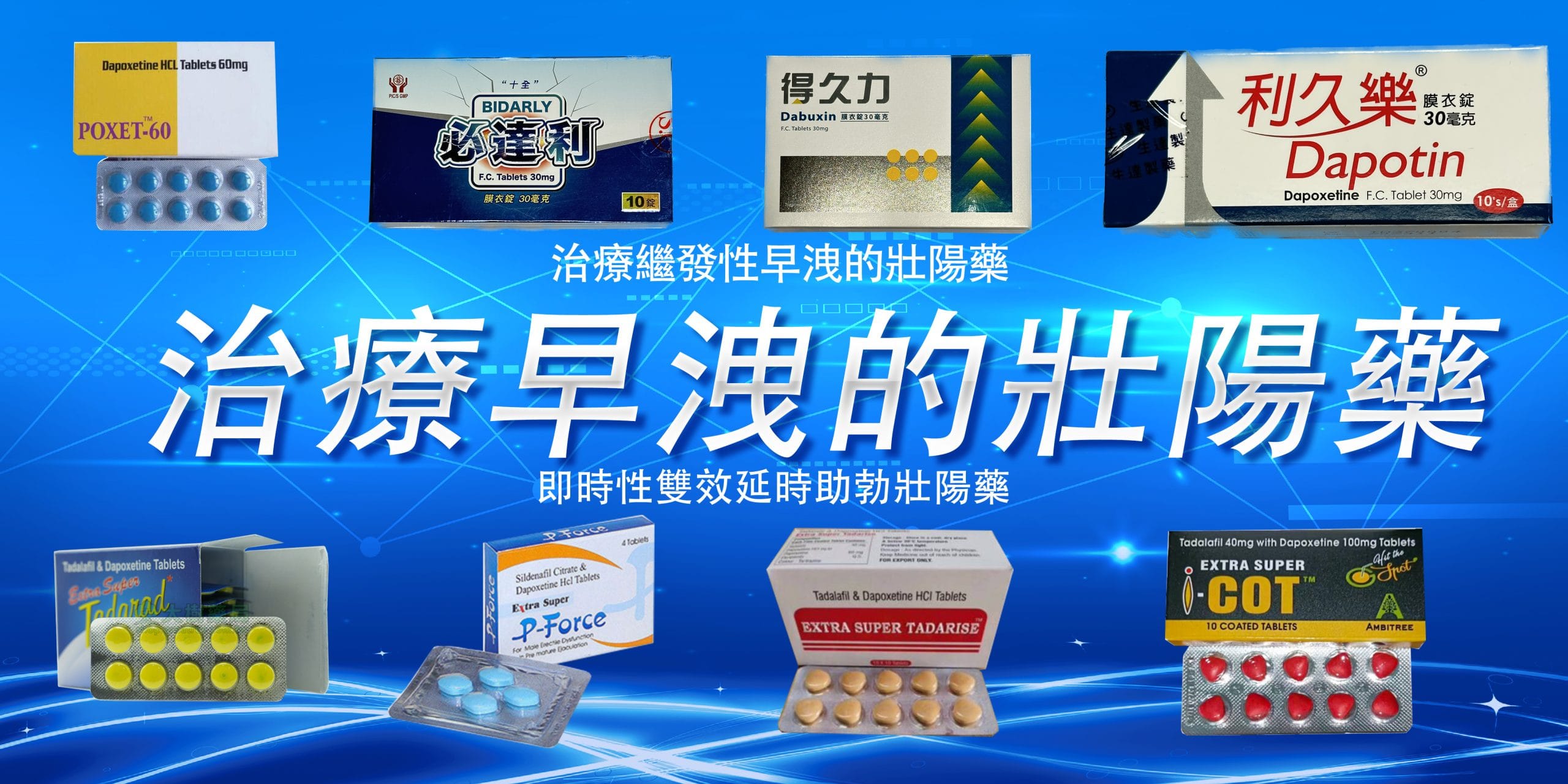 目前市面上只有含達泊西汀(INN Dapoxetine,商品名 Priligy 必利勁)成分的才有治療早洩作用的壯陽藥,是屬於一種快速起效和代謝的選擇性5-羥色胺再吸收抑製劑(SSRI),是一款用於治療16至84周歲男性早泄的藥物,通常可將射精前性交時長延長至原先的3至4倍。
