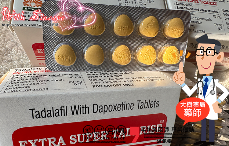 - 名稱:Super Tadarise、雙效犀利士、超級雙效犀利士、印度雙效犀利士、印度雙效希愛力、雙效希愛力、超級雙效希愛力