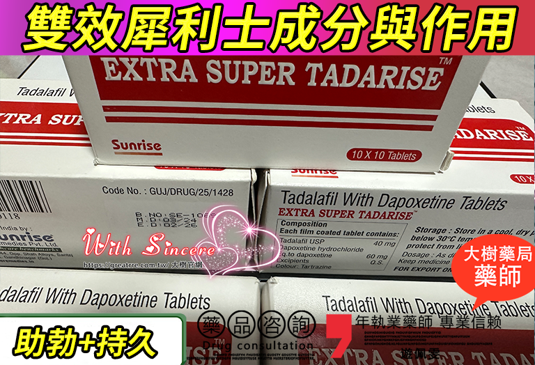 此外,他達拉非的藥效可持續長達36小時,而達泊西汀的效果通常在服用後1-3小時達到最佳狀態。這種長效與短效的結合,使雙效犀利士能夠在長時間內發揮穩定效果。