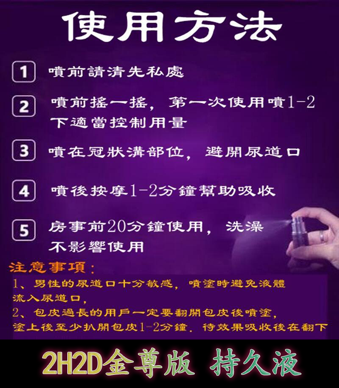 日本2H2D持久液金尊版是升級版起效快藥效更強,純植物草本提取,無副作用,不含酒精和刺激性的化學成分,使用後不麻木,有效延長30-60分鐘。