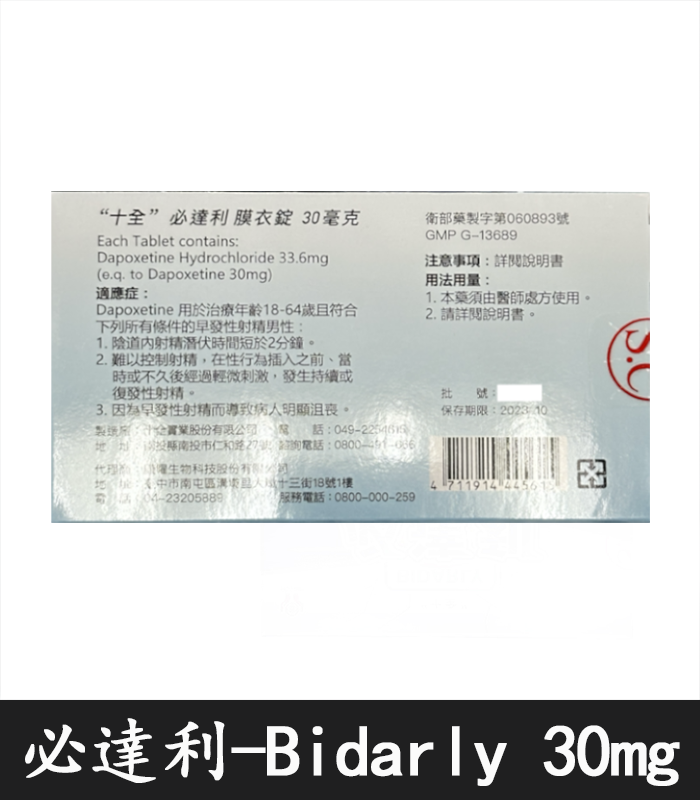 必達利 Bidarly 30mg 作為合法處方藥,應在醫師指導下使用。若有長期性生活不協調、早洩心理壓力,建議搭配性諮商或認知行為療法進行綜合治療,才能真正有效改善性生活品質。