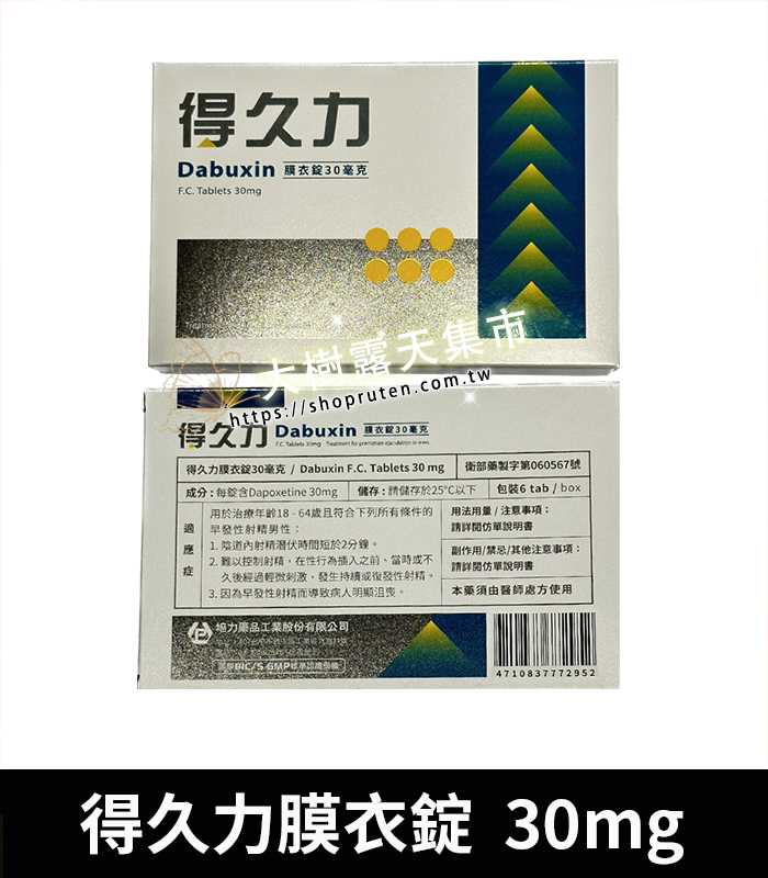 得久力膜衣錠 Dabuxin 30mg – 延長射精時間,提升持久表現