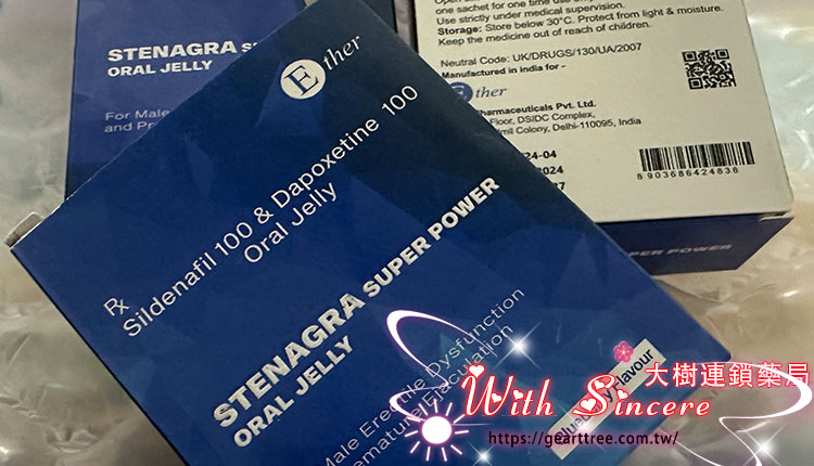 藍鑽果凍威而鋼(STENAGRA SUPER POWER ORAL JELLY)也叫斯泰納格拉果凍威而鋼,是一款專為男性設計的雙效液態果凍威而鋼,結合治療勃起功能障礙(ED)與早洩(PE)兩大功效於一身。由印度知名製藥品牌 Ether 出品,標示為處方用藥(Rx),適合有明確需求並在醫師指導下使用的成年男性族群。