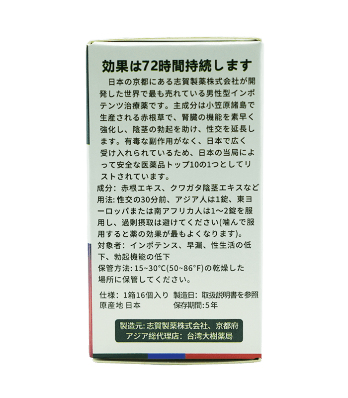 日本藤素(Japan Tengsu)是一款專為男性設計的純天然補養產品,以改善性功能障礙、增強體力與延時助勃為主要訴求。產品標榜不含西藥成分,適合用於保養腎功能、提升性能力與性慾表現。