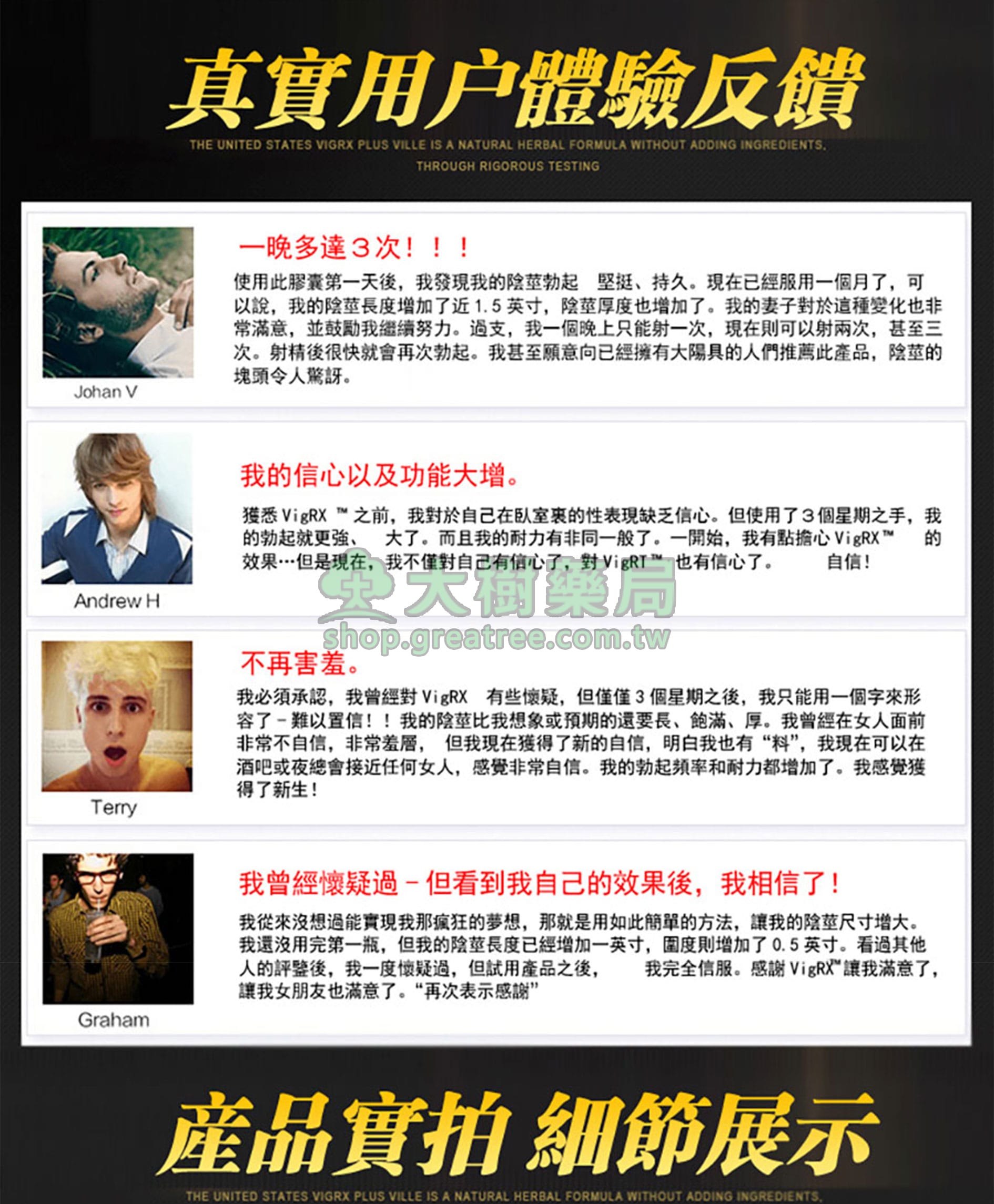 全面補充男性機能 VigRX Plus讓強大的電流重新出現在妳的性生活!VigRX Plus草本補充品,可增加您的陰莖血流量,讓勃起更強大,更有力。服用此全天然的男性增加補充品之後,您會看到VigRX Plus以前所未有的方式滿足您的伴侶!壹顆小小的藥丸就可讓您自信心加倍!無副作用 VigRX Plus可增加陰莖血流量,而且不必擔心其他有害的副作用。